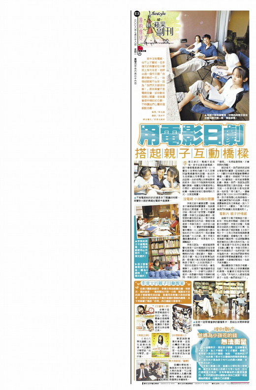 就算平日親子間無話不談,但有一些私密的情緒,卻能在看影片時發抒。李偉文回憶,有個朋友自認民主開放從不打罵,但她小學的孩子看到電影《小孩不笨》中,小男主角被爸媽誤解遭痛打的鏡頭,竟嚎啕大哭,孩子事後雖不願說明,但這經驗讓她重新檢討自己對小孩的行為。而看了描述國中生活的公視影集《危險心靈》後,李偉文即將上國中的兩個孩子,也終於脫下原本偽裝外表,表示她們對新學校的老師同學都會感覺緊張,怕不能適應,夫妻倆安慰兩女,也給予更多關注。