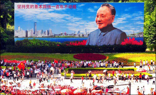 是關於是否堅持共產黨的基本路線的預言。這是鄧公在90年代中期回答關於堅持甚麼主義的時候的一句經典論述,原話是“堅持黨的基本路線一百年不動搖”,這句話被刷在了深圳的深南路上一個十字路口鄧公的一副巨幅畫像上,每天都有數十萬人看到,每到節日,就有大量的遊客在這裡拍照。