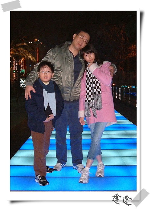 那一夜,就像仙女揮魔棒在墨黑夜色中點出閃爍色彩,我們驚喜地踩著鍵盤般的藍橙黃紅色塊,略過一個個的光箱,仰視著綴滿紫星的路樹,跳呀跳呀地進了圓形的廣場。