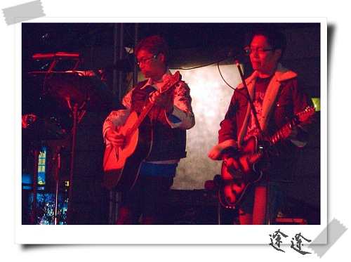 咦!有人在唱歌呢!趁著兒子纏著老公玩起捉迷藏,在廣場以及小橋棧道間跑跳嘻笑,我和女兒就忙不迭地追循歌聲的來源,打著紅藍燈光的露天舞台赫然在目,咖啡座間,許多時髦的年輕人安靜聆聽,低聲交談,距離舞台較遠的地方,則有幾對中年男女熱烈討論,只把歌聲當配樂。