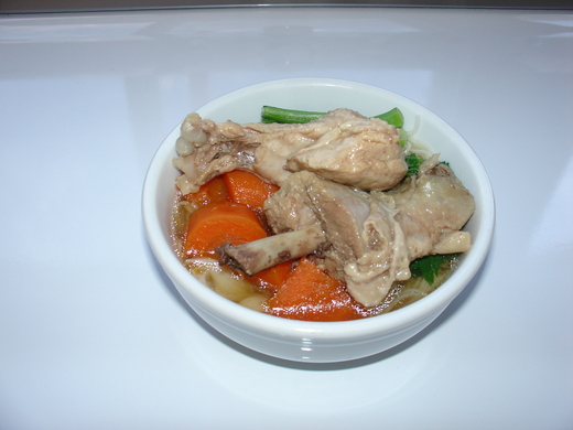 哥嫂送的台灣傳統麵線+台北好友千里迢迢寄給我的肉骨茶滷包+本地的有機雞隻+很多的中國大蒜瓣= 一碗好吃至極的肉骨茶麵線。
