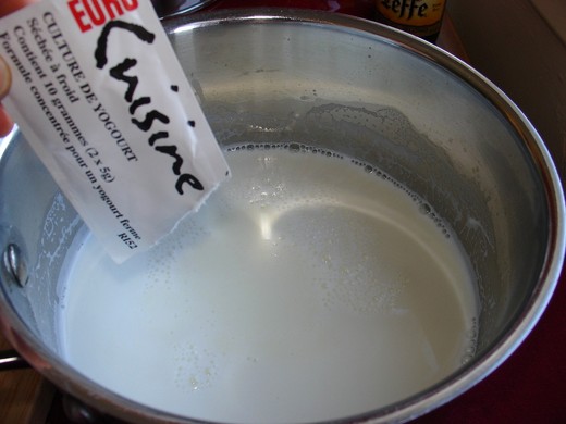 我是依照菌粉包裝上的說明把牛奶加熱的。我想原因是為了確保鮮奶內沒有其他的微生物影響菌粉繁殖。如果你能直接把菌粉加入冰鮮奶成功做成優格,那就方便很多。