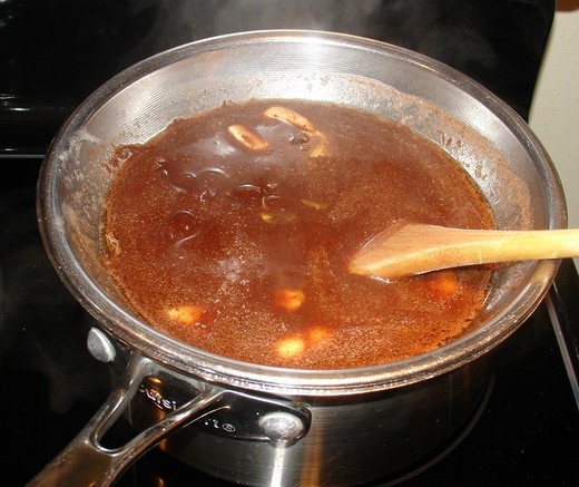 200克固體奶油和200克苦甜巧克力﹐一起隔水加熱溶化﹐融化後拌勻備用