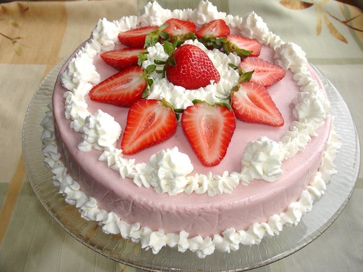 嚴格來說這個草莓慕斯不能稱為蛋糕﹐因為整體上不使用蛋糕體﹐我只是把一個很平凡的粉紅色草莓慕斯打扮裝飾一下看起來像蛋糕的樣子。