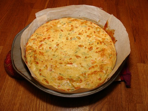 上個禮拜天是西洋父親節。在這之前我已經計劃好給孩子的爸爸在父親節早上做個好吃的早午餐。我在週六晚上小孩睡下後快馬加鞭烤了這個鹹蛋糕。隔天早上在烤箱裡加熱就可以上桌了。