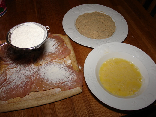 這個雞排的做法也可用豬排或小牛腿肉片﹐煎好以後就很香很好吃了。我婆婆常在家庭聚餐的時候做小牛腿肉排﹐她通常會在煎好的肉上面淋些蕃茄麵醬﹐撒些帕瑪起司和mozzarella起司(比薩上面會牽絲的那種)﹐進烤箱讓起司融化﹐即為高貴有名的帕馬森乾酪小牛排。真希望大家都有機會嚐到﹐因為它實在太美味了。