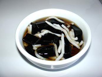 仙草冰涼以後很光滑﹐切塊和米苔目一起拌糖水吃。