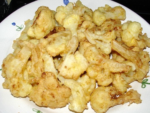 有一次婆婆請我們吃飯﹐我進她的廚房幫忙洗鍋子清理料理臺。看到她正在炸白花菜﹐香噴噴的﹐我看了很好奇﹐站著看也跟著學起來了。後來在家裡依樣劃葫蘆﹐結果銷路好到爆﹐炸一顆花菜都不夠吃。
