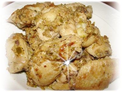 材料: 油2-3大匙﹐青蔥5根﹐薑3cmX3cm一塊﹐油蔥酥2大匙﹐雞腿2根﹐雞翅2根﹐鹽1小匙﹐胡椒少許﹐水1杯