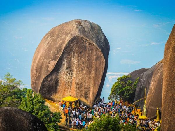 奇查谷山山頂懸崖邊矗立著一塊巨大的山石,旁邊還有一個寬1米長的2米佛足印,使得奇查谷山更添了一層神秘的面紗。
