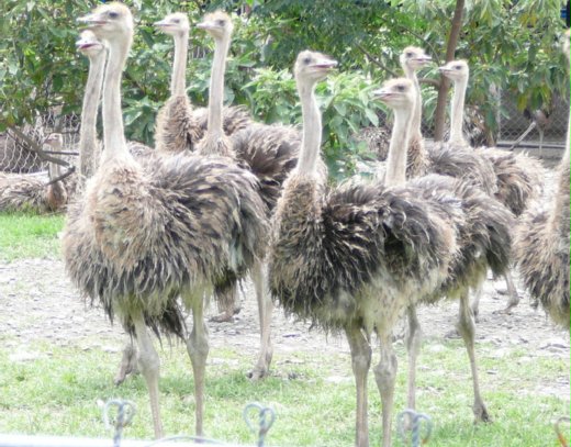 據說鴕鳥很神經質,稍微風吹草動,鴕鳥就可能把頭埋起來,瞧!這些少年鴕鳥好像隨時豎起耳朵,準備「神經」一下。