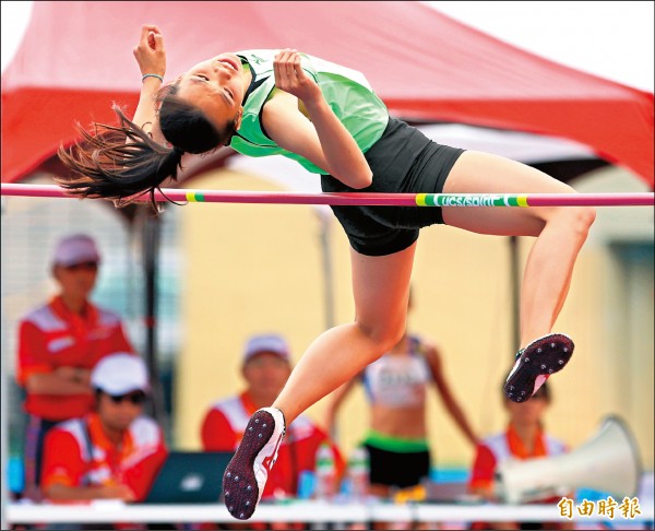 從國一參加全中運就是金牌保證!雲林縣斗南高中蔡瀞瑢昨在高女組跳高項目,毫無意外以1公尺75技壓群雌,締造個人跳高五連霸。