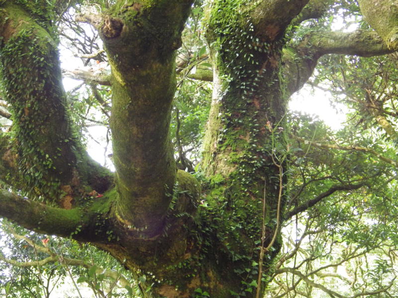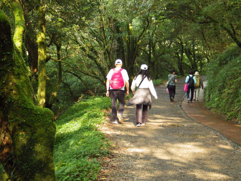 步道長約兩公里,地勢平緩,沿途老樹原始林,濃濃綠意樹蔭,漫步其中,有說不出的感動;到達二子坪,小湖、草坪、木造橋,或坐、或仰,輕鬆自然,看見山嵐,也看見了休閒與放鬆。