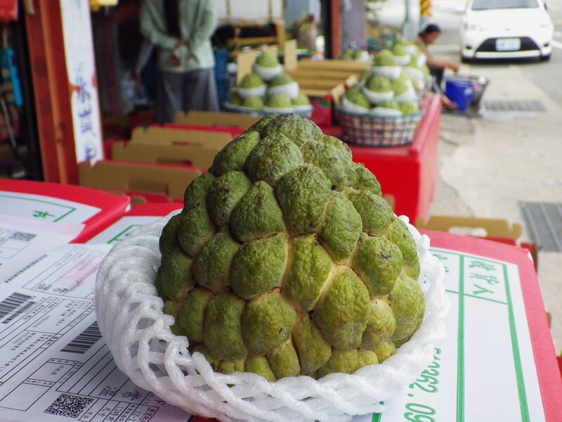 終於,問了一攤,說有!有一顆,原價100元,賣你80元,我毫不懸念,付了錢,抱了那顆釋迦(如圖),就不客氣,就坐在現場,大快朵頤起來,這是我吃過最好吃得釋迦。↓如下圖