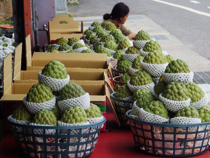 徒步環島走進太麻里,沿路好幾攤賣釋迦,都是碩大飽滿,看起來很可口,於是問老闆,有否現吃的(在叢黃)?好幾攤,老闆立刻脫口喊到:「沒有!沒有!都來不及黃(熟)」,每一家的台詞都差不多,我都立刻恭喜,生意好,老闆得意笑笑。