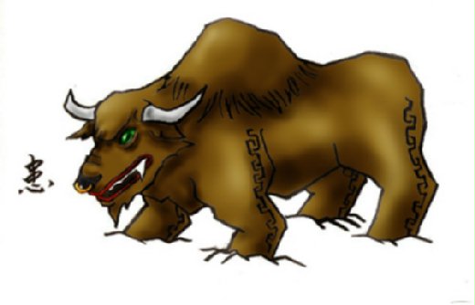 漢武帝東游,未出函谷關,有物當(ㄉㄤˇ)道。 身長數丈,其狀象牛,青眼而耀睛,四足入土,動而不徙。百官驚駭。