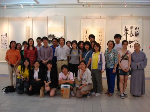 一開始看他這樣問,又看著他這樣的笑容還真的不敢肯定是或者不是。我就曲折的問說:老師,到你不是嗎?因為我聽說大陸很多都是無神論者。老師還是一直笑著,我又問:老師,你到底是不是?老師只說:你們猜猜。那個笑容、那個問法真讓我們猜是也不是猜不是也不是,布丁就回答說:不知道。老師還是那句:沒關係,你們猜看看。後來我猜不是,但是隨後又補了一句話:可是,藝術家應該多少都有接觸佛教吧?老師就給了我們答案,他是。= =||害我們猜了這麼久=皿=+++他說他常給寺廟裡寫書法。嘖嘖,聽說老師的價錢可是浙江裡最高的呢!