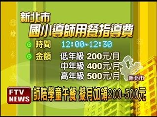 新北市上學期爆發營養午餐弊案,引發各界撻伐,這學期市府宣佈,將補助國小導師,用餐指導費,再度引起爭議,教育局希望,每位國小導師,在中午用餐時間,留在學校陪學生吃飯,每個月發給200~500元的薪水,不過家長質疑,老師實在是賺很大。