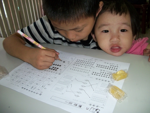 他們家有四個孩子,家裡是揀資源回收的,很辛苦的一家,但是這個男生其實很願意學習,也學習不錯,只是真的沒辦法讓他去幼稚園,不過我們的老師有盡量給他學習了~他是個很可愛的孩子,雖然有時候脾氣很硬~哈哈!