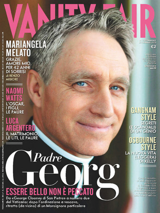天主教教宗本篤16世的秘書耿斯凡神父身材結實,素有「梵蒂岡的喬治柯隆尼」之稱,如今登上16日發售的義大利版「浮華世界」雜誌封面,標題為「俊美無罪」。