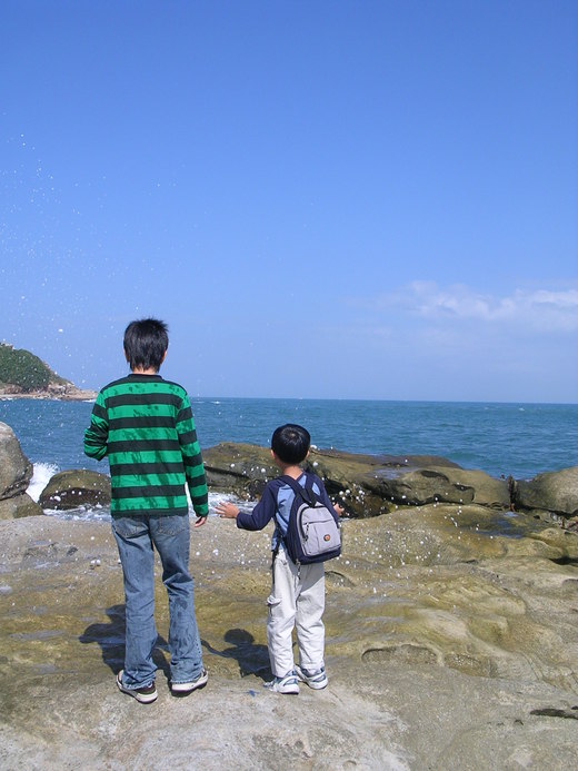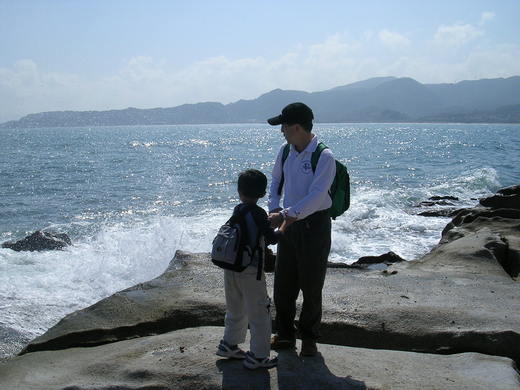 北海岸的「獅頭山」看海岸地形與地質生態,與苗栗的「獅頭山」看山看佛教建築,感受大不同,前者因為受到板塊擠壓、東北季風以及海水不斷的侵蝕,孕育海岸地形與地質生態之外,也隨著一年四季的氣候變化,有著相當特殊的生態景觀。其步道平緩,可以輕鬆散步其間。越往海岸邊走去,望東可看見野柳岬,而北方開闊的海面上,即可以見到著名的金山地標-「燭臺雙嶼」,西邊則是璜港漁港與中角山海景映入眼簾,遠望,海闊天空,近看,海浪打來的感覺壯闊又令人敬畏,真美!