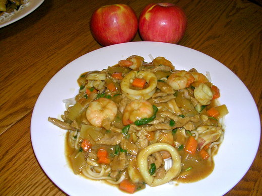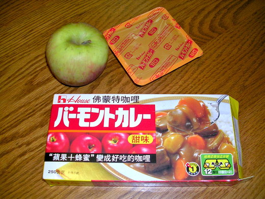 往常都做牛肉咖哩,口味較重,今天是第一次嘗試做海鮮咖哩,嗯...吃一口...有點驚訝!口感非常清爽ㄋㄟ...淡淡的義大利香料的清香和海鮮很搭,在咖哩濃郁的香氣下,一點也沒被影響喔...真的很特別,阿....有人尚未開動,趕快拍張照...當然啦,因為是臨時起意,因時間關係沒來得及多做裝飾...所以就這樣呈現了..其實要好看一點就是食材→洋蔥.馬鈴薯.紅蘿蔔、雞肉塊要切大塊一些啦,視覺效果比較好,也因為大塊能鎖住原味。
