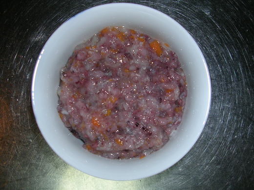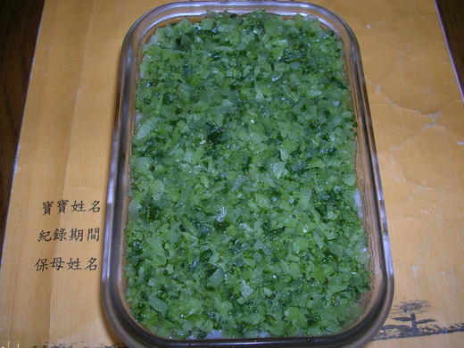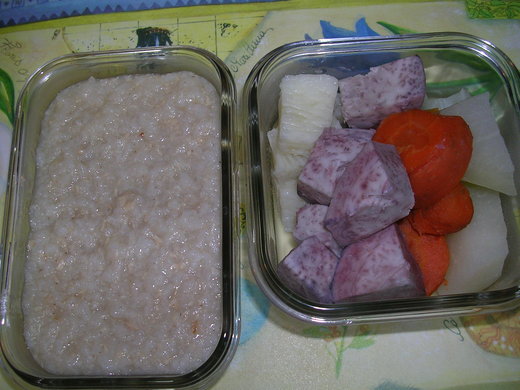 九~十個月大的幼兒飲食由於考慮到食材的過敏度,可以應用且為當季蔬果,從六個月添加副食到現在適應的種類有限,且此時幼兒主要的營養來源仍是母奶或配方奶,因此餵食方式仍為母奶為主、粥、水果糊為輔,食材則漸進式增加,蔬菜類則選擇2~3樣搭配,比起之前的菜色有很大的彈性了,目前維持日間一日三餐搭配粥類及一份水果泥和點心。