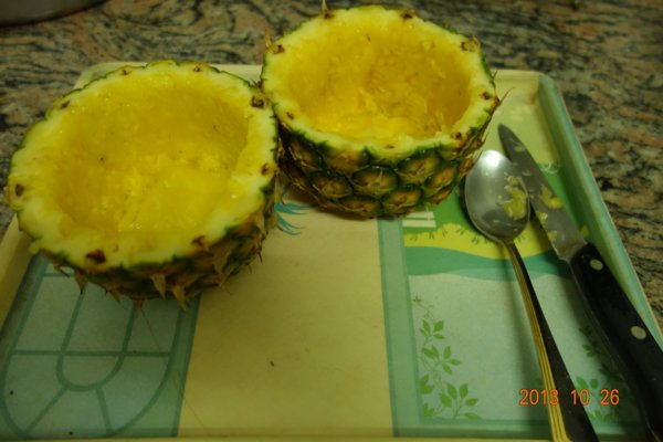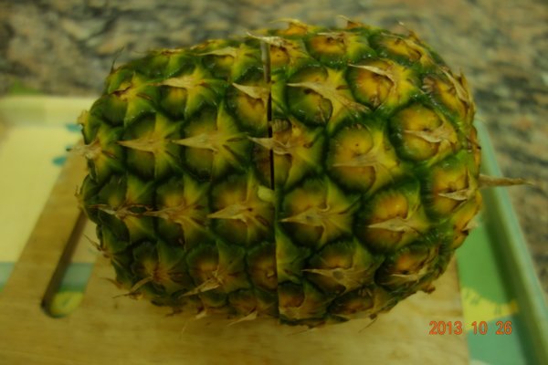 切開鳳梨 很容易....挖出鳳梨肉 就要有耐心喔 ......