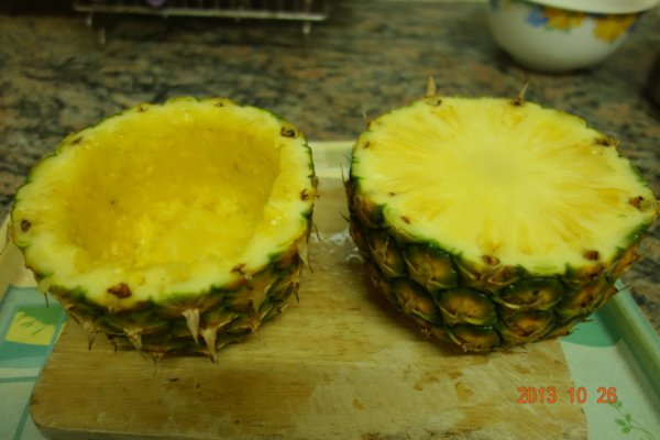 挖出鳳梨肉 要切成 小丁備用 ......
