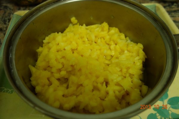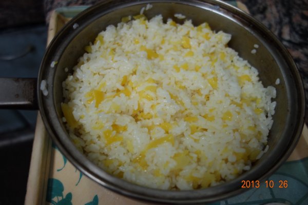 將白飯 和 煮好的鳳梨拌勻/ 小心點別將米飯攪的胡爛喔)