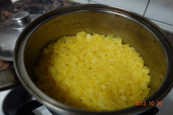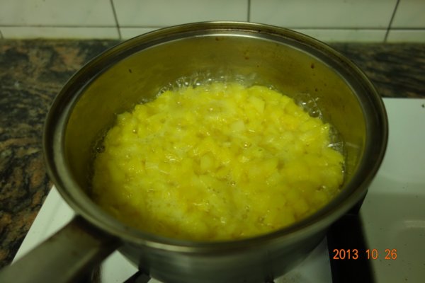 切好的 小丁.放入鍋中 (不加水 /不加糖) 中火煮熟...