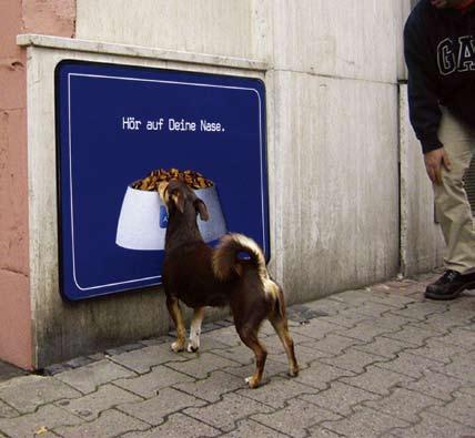 德國一家狗糧生產廠家在招貼廣告的顏料中添加了狗飼料的香味