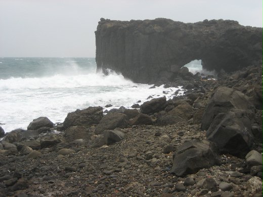 鯨魚洞是海浪侵蝕而成的海拱。遠望形如擱淺岸邊的鯨魚,故名。第一次邂逅鯨魚洞,玄武岩海拱頂端三大塊正方形混凝土,各書一字:鯨、魚、洞。令人啼笑皆非的傑作,不知出自哪個白痴的點子?