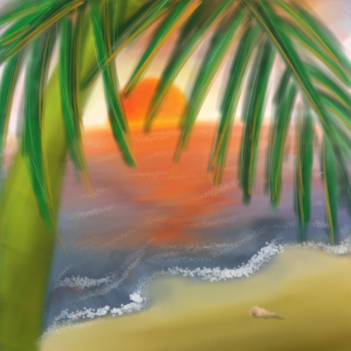 這張作品是用Painter作的練習畫,也是第一次用這軟體的作品,在這張夕陽裡,能讓我滿意的,大概只有海浪了。