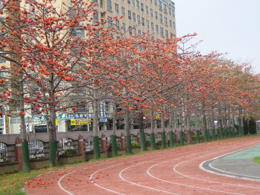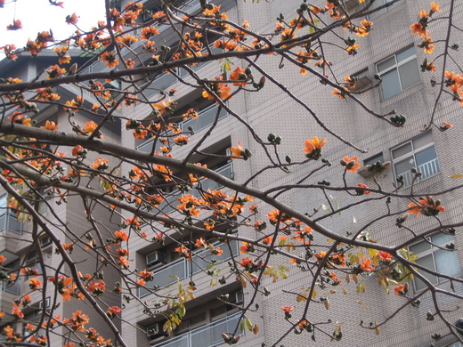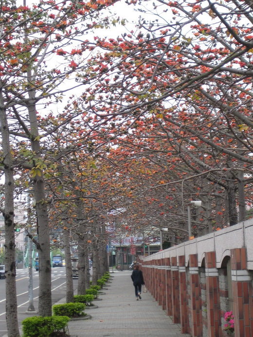 記得讀高中時, 應該是台北市仁愛路二段吧?! 就是沿著原來的空軍總部一路到新生南路口, 也種了好多棵的木棉樹, 那一段是我每天上下學必經之路. 所以只要是木棉花開時節, 為了欣賞那美麗的街景, 總是會和同學故意在臨沂街/大安分局站下車(那時候可沒有公車專用道呢!), 然後走兩三站再等公車回家. 雖然經常因為晚回家被父母責備, 心裡卻是被罵也甘願啦!