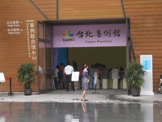 台灣館沒能進去參觀, 台北館就不能再錯過, 在排了約兩小時的隊, 終於得以進去參觀. 最先進入眼簾的是一段歡迎短片, 一群群好可愛的台灣小朋友, 用著各國語言說著: 歡迎來台北 . 同時畫面裡介紹著清晨的台北/忙碌的台北/夜晚的台北, .... 緊接著我們進到另一個房間看3D科技裡的台北. 那麼乾淨的台北市, 有秩序的台北市, 有禮貌的台北市民, 垃圾不落地資源回收有效率的台北市, ..... 有意思的是; 那些不守秩序的大陸人, 在其他館參觀時, 大聲喧嘩也就罷了, 明明立牌寫著:[請勿觸摸], 這些大陸人每人過去就是要摸上一把. 明明寫著:[請勿攝影], 只見相機鎂光燈是閃個不停, 真的令人非常厭惡. 不過, 這些大陸人在台灣館及台北館外排隊時, 可是很有規矩的. 我們雖然沒能進去台灣館, 但是遠遠望去, 台灣館外清潔整齊, 大陸人乖乖排隊規矩的很呢! 這些大陸人進了台北館裡, 聽著跟著服務人員指示, 安安靜靜的觀賞影片, 不但不敢喧嘩, 更不敢撒野呢! 所以, 大陸人在台灣館台北館得守規矩, 到台灣旅遊還是得守規矩. 台灣當然了不起, 台灣人就是了不起, 不是嗎?!