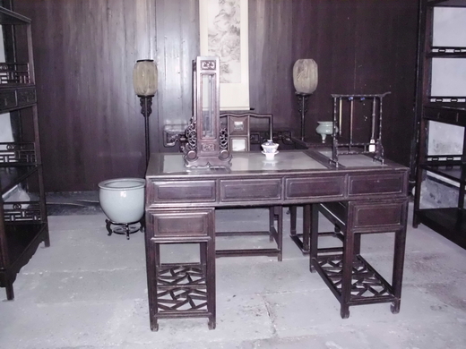 3. 第三張照片是書房, 書桌上右方放的是一個筆架, 中間有一杯茶, 而桌上左方立了一個玻璃扁櫃, 那又是做什麼的呢?