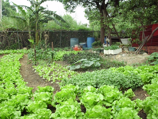 昨天下午出門慢跑時, 經過一處農家, 農家邊上的鐵絲網籬笆裡, 是一片種植許多青菜的小園. 只見一位老阿伯拿著鋤頭輕撥土裡的雜草. 都市裡長大的我, 站在籬外對著園裡各式青菜好奇不已, 喊著阿伯用著我那憋腳的台語問著這些青菜的種類. 阿伯很熱心的告訴我 - 喔! 這是金瓜, 紅菜, 大陸妹, 水管ㄚ菜(我還是搞不清楚什麼是水管ㄚ菜? 哈哈!), 蔥啊, .. 那邊是山茼蒿, Aㄚ菜, 芫荽, ..., 阿伯很驕傲的說: 我這些菜都沒有灑化學肥料, 是很健康的菜哩, 真的很有意思. 聊著聊著, 我問阿伯的歲數, 阿伯, 你有八十歲嗎? 阿伯笑著說: 我哪有那麼年輕, 我九十四囉! 我心想: 哇! 九十四歲欸, 可是阿伯看起來, 說實在話, 一點都沒有那麼老, 阿伯走起路來很穩健, 拿著鋤頭的雙手不但有力, 撥起土來像是有節奏般一拍一拍的呢!. 阿伯說他做了一輩子的田, 古早時的做田人, 攏碼是透早就在田地裡忙, 黃昏時才回家, 每天都同款啊, 日子就一天天的過, 看到田裡的秧苗一點一點的長大, 到了收成時田裡一片金黃, 是他最開心的時候. 阿伯說: 到了九十四歲, 還能正常的精神走路, 是[福氣啦]! 阿伯又說兒孫都有自己的事在忙, 有的住台北, 有的住在桃園市, 他是閒閒沒事做, 所以趁還能動就種一點菜, 作一些農事當運動活絡筋骨, 總不能整天坐著看電視喥龜等吃飯呀. 九十四歲的阿伯完全沒有重聽喔, 他一邊和我聊天解答我的疑問, 而他的雙手可也沒閒著, 還是一鋤一鋤的在土裡挑來挑去. 和阿伯道再見時, 我請他一定要繼續健康, 阿伯一臉笑意直說著謝謝啦.