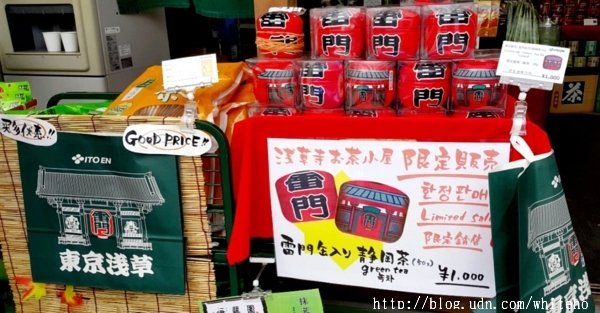 鄰近寺廟不遠處的草坪空地區設有茶屋,除了提供免費的綠茶試喝,也販售茶葉以及可愛的雷門限定罐包裝。