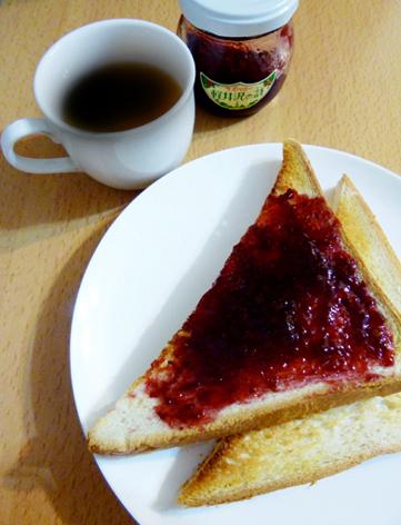 果醬瓶身上寫著Confiture,此為法文果醬的意思,代表著在手製果醬前,先將水果醃漬後再熬煮,此為法式果醬的特色,打開時,淡淡的花香撲鼻而來,淡雅的粉色果醬內,蘊含著一片片的花瓣,美到令人捨不得吃。
