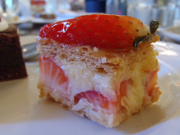 飯後甜點,香酥脆的千層薄餅內夾濕滑柔軟香甜的奶油及酸甜的新鮮草莓切片,可說是超完美幸福的ending。