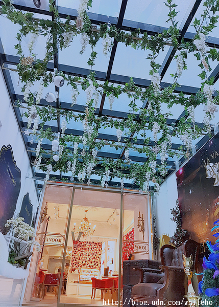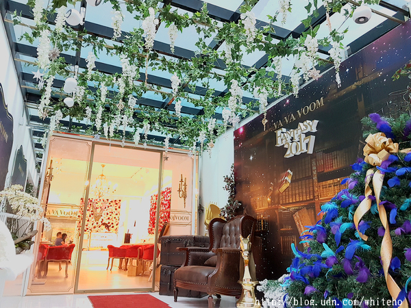 一踏進VA VA VOOM入口處的紅毯及應景的主題時尚立體背板,有種走在星光熠熠的時裝秀紅毯上或參加時裝派對VIP的感覺,心中不禁wow了一聲。特別喜歡那一整片透光的玻璃花架設計,好美好浪漫。