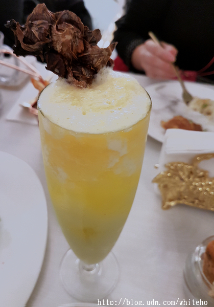 各式茶飲的命名美美的,果汁命名也挺有意思~~像是我點的這款果汁叫鳳梨芭芭190元,意即鳳梨芭樂汁,第一次看到以烤鳳梨皮來當杯緣裝飾,有創意。