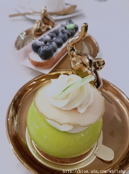 很喜歡這款名為加冕的青蘋果慕絲,以及鋪了滿滿藍莓的閃電泡芙、檸檬塔。