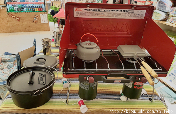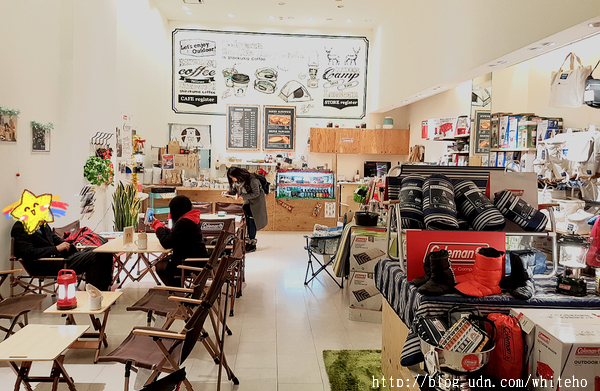 店內一半是shirokuma coffee咖啡輕食區、一半空間展售著Coleman用品。