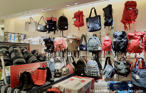 商品區內最大的亮點是Coleman品牌全球僅此一家販售的白色系各式機能包包,喜歡這個品牌的朋友不妨把握這獨賣的選品機會。