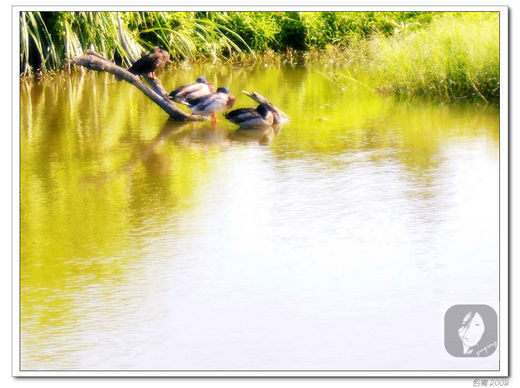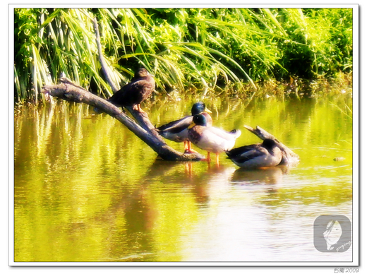 牠們遊靠著池中一枯樹