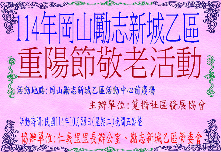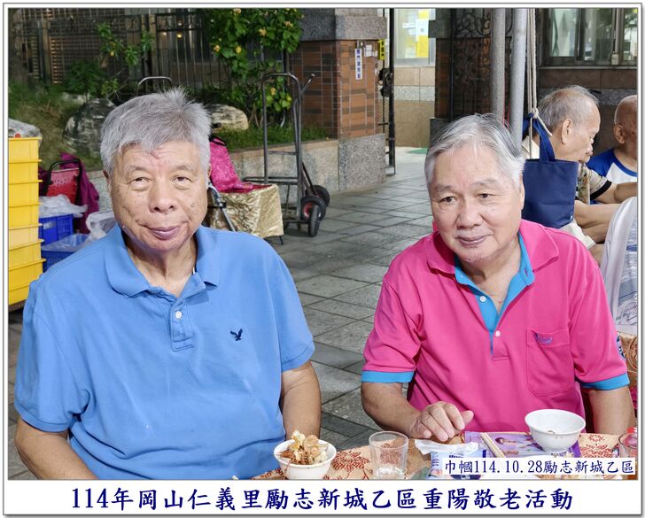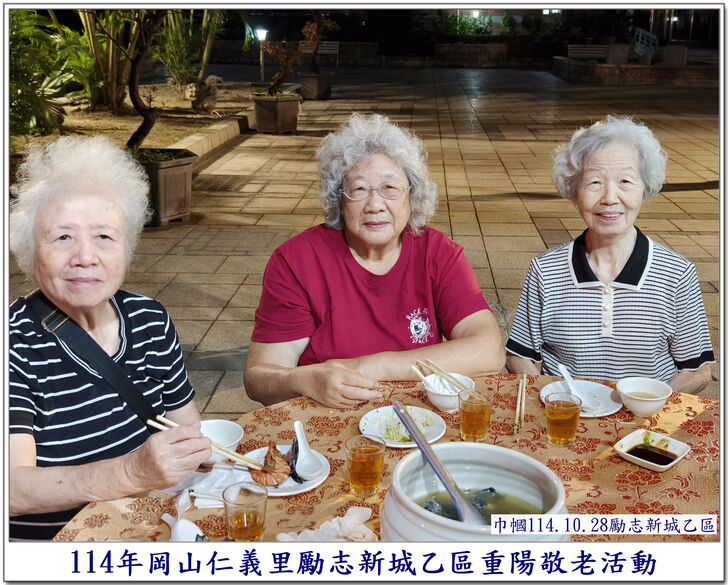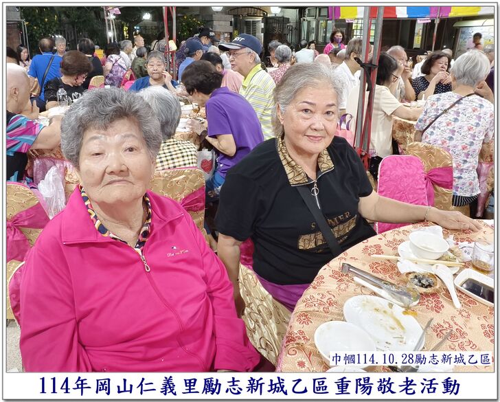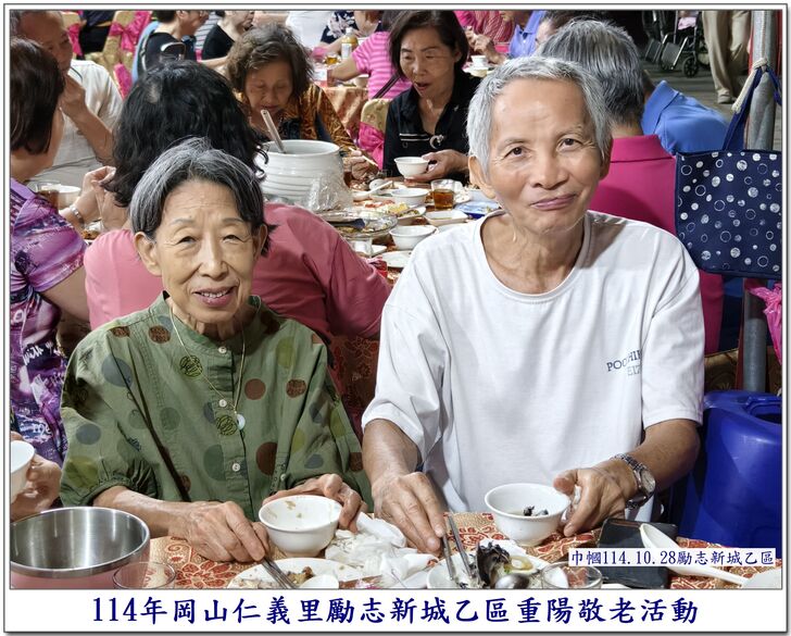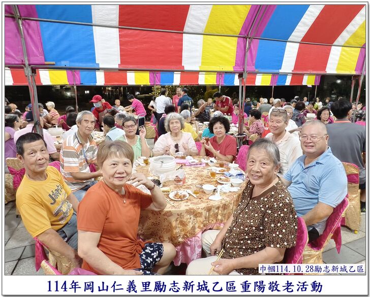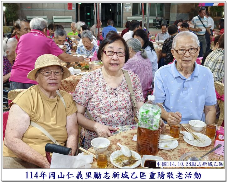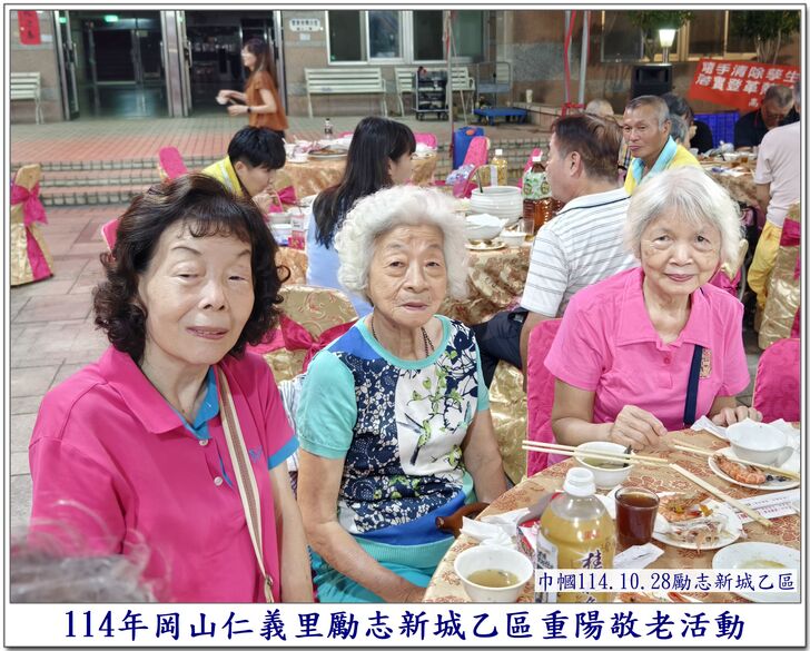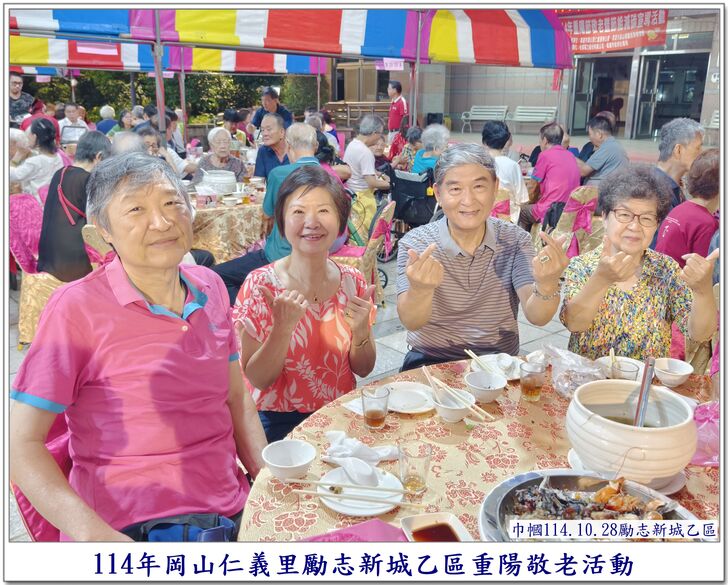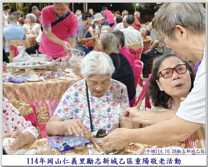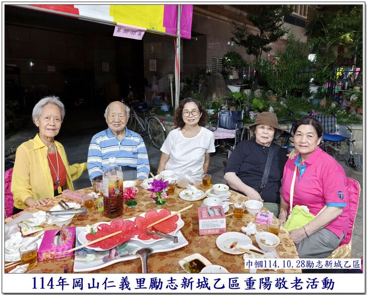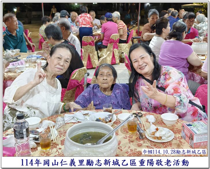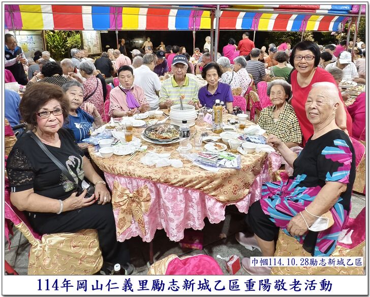 中秋節一過,社區的重要活動,就剩下【重陽節】了~~ 自從仁義里顏茂吉里長上任之後,本來單調的【重陽節】活動變得熱絡溫馨了起來。 顏茂吉里長非常重視仁義里各階層的居民,尤其是,我們都是從岡山各眷村原住戶搬過來的~~ 其中,很多都是年長的,之前,有人曾戲稱我們【勵志新城】是個老人城, 是也不是~~ 【是】意思就是,確實老眷村居住的年齡確實是偏高的,是父母親輩一輩子的家,【父母在、家就在】, 所以,民國96年大家剛搬進來時,居住人口大都以【眷村第一代】為主體~~ 隨著時間過去,社區裡的老人逐一凋零,崛起的我們【眷村第二代】,也接手為社區的主力人口,大都也是7、8、60多歲的人了~~ 近年來,由於社區居住環境優良,生活便利性稱冠,已經有非常多的住戶,因老人過世,或舉家遷往別處,將房子賣了~~ 現在社區的生態,也逐漸年輕化,新搬來的住戶,也有不少是【年輕人】,社區中的【小孩】數量也較之前多多了~~ 人說【舊的不去,新的不來】 但,我們社區,還是保留著老眷村流傳下來的【溫馨氣份】,眷村人情味依舊散佈在社區各個角落~~ 此次,受邀參加仁義里勵志新城乙區的重陽餐會,在餐會中走拍的時候,深深的感受到~~ 出現了許多陌生的面孔,而認識的新加入者,有不少是我們【眷村第二代】,能看到還參加餐會的【眷一代】的叔伯媽媽們,心是感恩及感動的~~ 我喜歡乙區活動的友善氛圍,認識我的人,喜歡我的鏡頭對著他們,為他們記錄下珍貴的畫面~~ 每每我看到歷年來我幫乙區拍的各項活動,也總是會有些淚眼盈眶,往日美好的,張張都化成回憶~~ 看著每位逝去的老人,總是無限的懷念在心頭,更加珍惜現在的老人~~ 【兒女小時候是父母的心頭肉】,現在【父母也應該成為我們兒女的心頭肉來照顧才是】 祝大家~~ 重陽節快樂~~ 闔家平安健康~~🙏