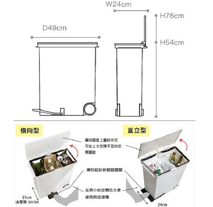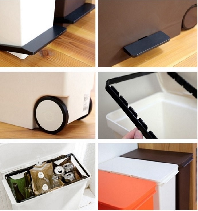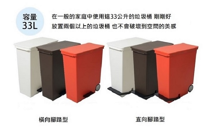 - 33L大容量 雙內環設計可使用一個或多個垃圾袋,方便分類 踩踏方式,丟棄垃圾更便利 腳輪設計,讓您可以輕鬆的移動它 時尚簡約外表,適用於任何地方