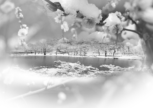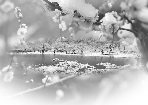 冷雪柳枝 依舊在那 亭中湖 雪中起舞